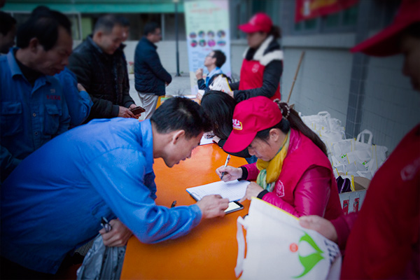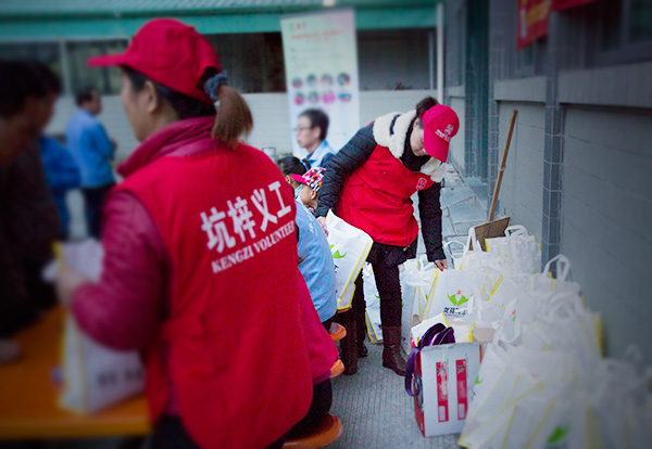 义工给前来领取礼品的蜀黍耐心讲解流程