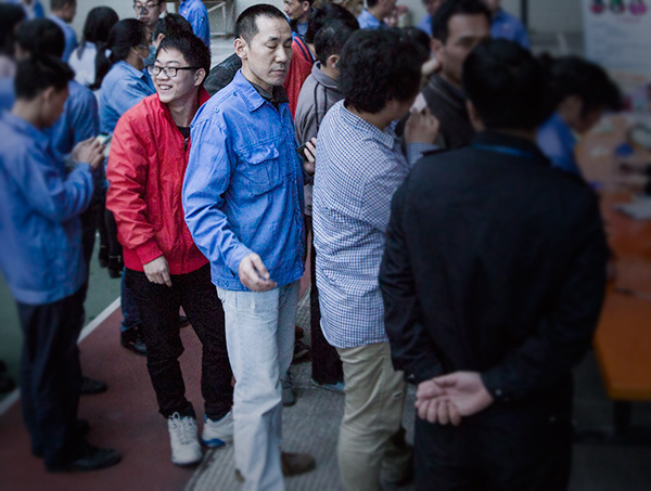 工厂1号员工:咦,饭堂一楼怎么那么多人围在那里啊。好像登记什么还有东西拿哦。